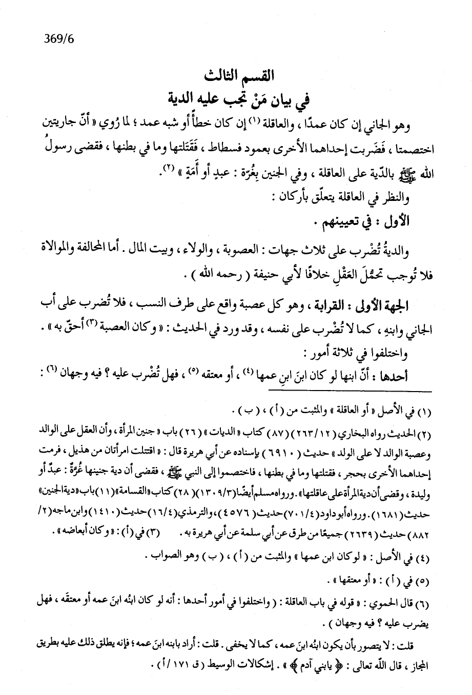 الْقسم الثَّالِث فِي بَيَان من تجب عَلَيْهِ الدِّيَة