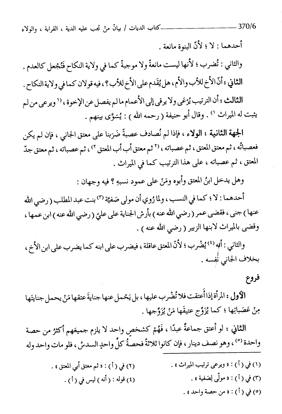 الأول الْمَرْأَة إِذا أعتقت فَلَا تضرب عَلَيْهَا بل يحمل عَنْهَا جِنَايَة عتقهَا من يحمل جنايتها من عصباتها كَمَا يُزَوّج عتيقها من يُزَوّجهَا