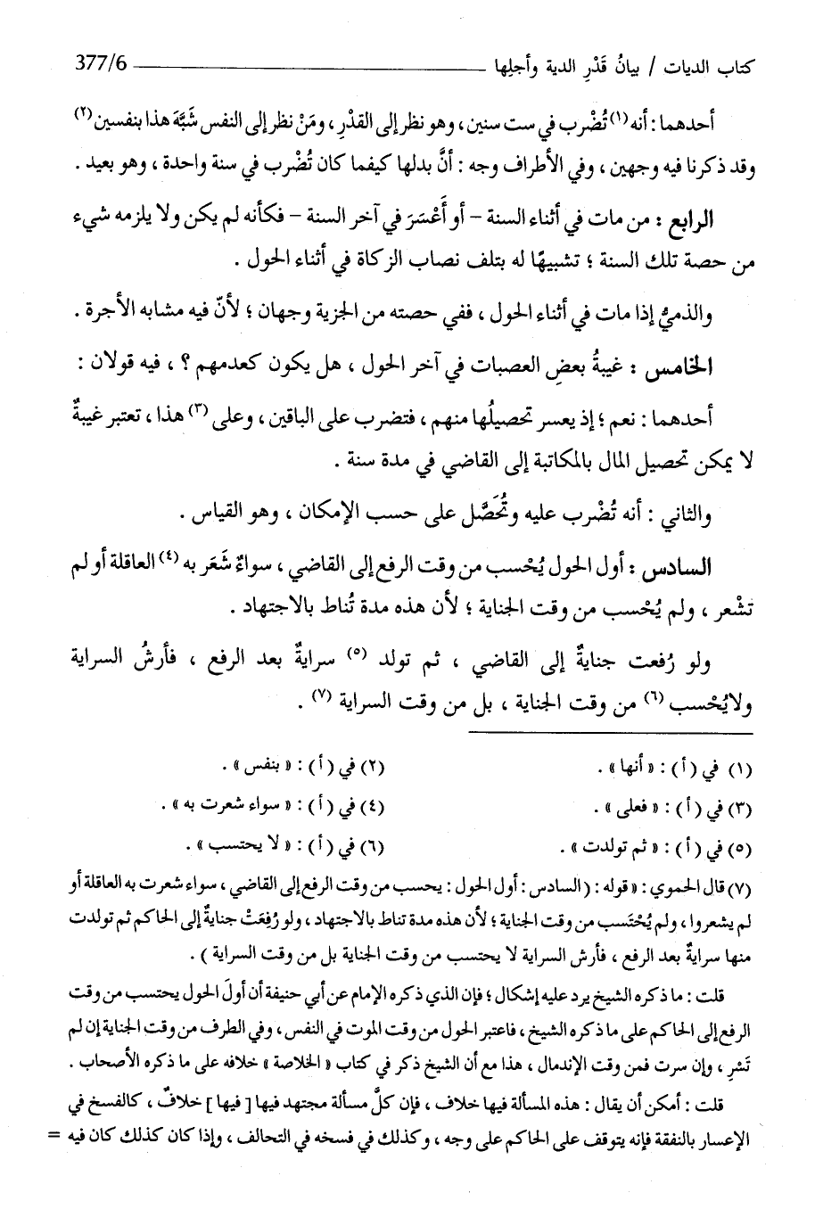 السَّادِس أول الْحول يحْسب من وَقت الرّفْع إِلَى القَاضِي سَوَاء شعر بِهِ الْعَاقِلَة أَو لم تشعر وَلم يحْسب من وَقت الْجِنَايَة لِأَن هَذِه مُدَّة تناط بالإجتهاد