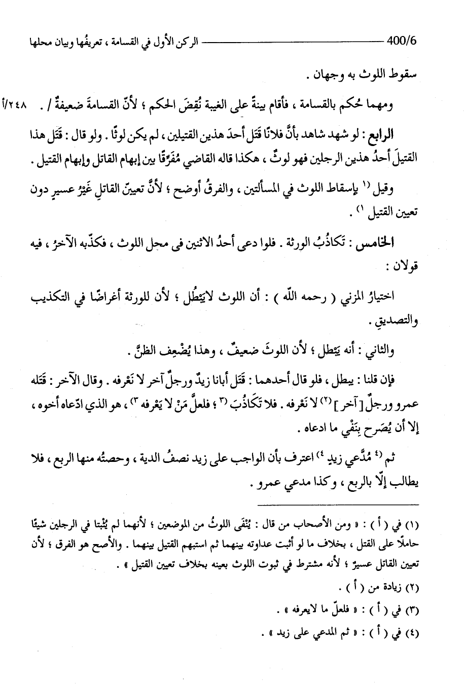 الرَّابِع لَو شهد شَاهد بِأَن فلَانا قتل أحد هذَيْن الْقَتِيلين لم يكن لوثا وَلَو قَالَ قتل هَذَا الْقَتِيل أحد هذَيْن الرجلَيْن فَهُوَ لوث هَكَذَا قَالَه القَاضِي مفرقا بَين إِبْهَام الْقَاتِل وإبهام الْقَتِيل