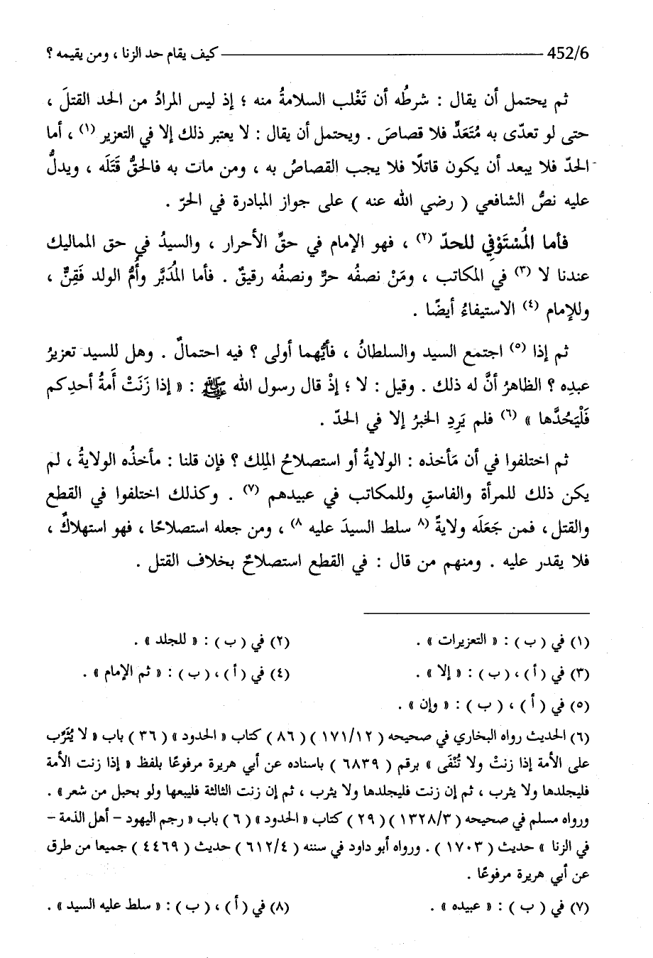 ثمَّ إِذا اجْتمع السَّيِّد وَالسُّلْطَان فَأَيّهمَا أولى فِيهِ احْتِمَال وَهل للسَّيِّد تَعْزِير عَبده الظَّاهِر أَن لَهُ ذَلِك وَقيل لَا إِذْ قَالَ رَسُول الله صلى الله عَلَيْهِ وَسلم