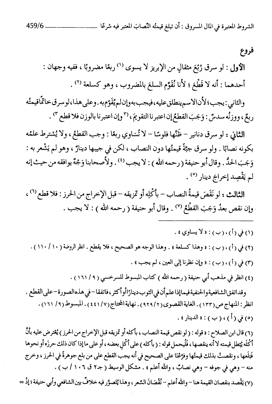 الأول لَو سرق ربع مِثْقَال من الإبريز لَا يسوى ربعا مَضْرُوبا فَفِيهِ وَجْهَان