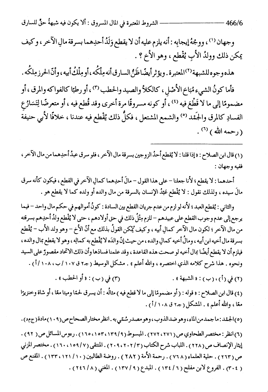 فَأَما كَون الشَّيْء مُبَاح الأَصْل كالكلأ وَالصَّيْد والحطب أَو رطبا كالفواكه والمرق أَو مضموما إِلَى مَا لَا قطع فِيهِ أَو كَونه مسروقا مرّة أُخْرَى وَقد قطع فِيهِ أَو متعرضا لتسارع الْفساد كالمرق والجمد والشمع المشتعل فَكل ذَلِك يقطع فِيهِ عندنَا خلافًا لأبي حنيفَة رَحمَه الله