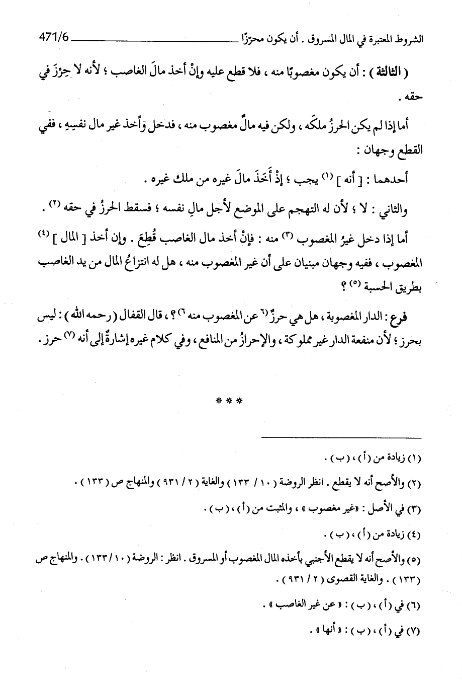الثَّالِثَة أَن يكون مَغْصُوبًا مِنْهُ فَلَا قطع عَلَيْهِ وَإِن أَخذ مَال الْغَاصِب لِأَنَّهُ لَا حرز فِي حَقه