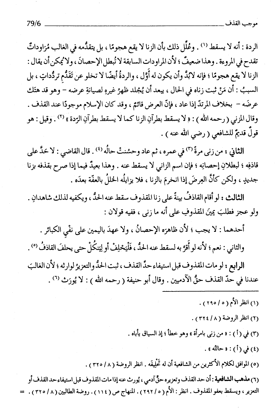 الرِّدَّة أَنه لَا يسْقط وَعلل ذَلِك بِأَن الزِّنَا لَا يَقع هجوما بل يتقدمه فِي الْغَالِب مراودات تقدح فِي الْمُرُوءَة وَهَذَا ضَعِيف لِأَن المراودات السَّابِقَة لَا تبطل الْإِحْصَان وَلَا يُمكن أَن يُقَال الزِّنَا لَا يَقع هجوما فَإِنَّهُ لَا بُد وَأَن يكون لَهُ أول وَالرِّدَّة أَيْضا لَا تَخْلُو عَن تقدم ترددات بل السَّبَب أَن من ثَبت زِنَاهُ فِي الْحَال يبعد أَن يجلد ظهر غَيره لصيانة عرضه وَهُوَ قد هتك عرضه بِخِلَاف الْمُرْتَد إِذا عَاد فَإِن الْعرض قَائِم وَقد كَانَ الْإِسْلَام مَوْجُودا عِنْد الْقَذْف وَقَالَ الْمُزنِيّ رَحمَه الله لَا يسْقط بطرآن الزِّنَا كَمَا لَا يسْقط بطرآن الرِّدَّة وَقيل هُوَ قَول قديم للشَّافِعِيّ رَضِي الله عَنهُ