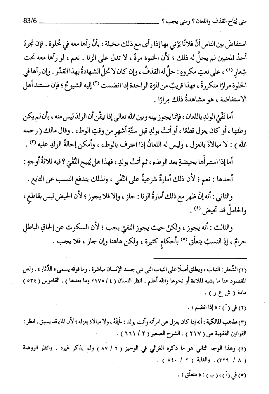 أما نفي الْوَلَد بِاللّعانِ فَإِنَّمَا يجوز بَينه وَبَين الله تَعَالَى إِذا تَيَقّن أَن الْوَلَد لَيْسَ مِنْهُ بِأَن لم يكن وَطئهَا أَو كَانَ يعْزل قطعا أَو أَتَت بِولد قبل سِتَّة أشهر من وَقت الْوَطْء وَقَالَ مَالك رَحمَه الله لَا مبالاة بِالْعَزْلِ وَلَيْسَ لَهُ اللّعان إِذا اعْترف بِالْوَطْءِ وَأمكن إِحَالَة الْوَلَد عَلَيْهِ