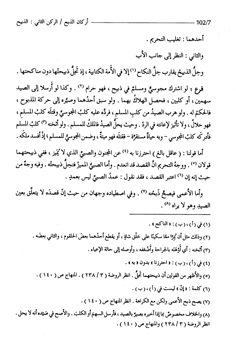 فرع لَو اشْترك مَجُوسِيّ وَمُسلم فِي ذبيح فَهُوَ حرَام وَكَذَا لَو أرسلا إِلَى الصَّيْد سَهْمَيْنِ أَو كلبين فَحصل الْهَلَاك بهما وَلَو سبق أَحدهمَا وصيره إِلَى حَرَكَة الْمَذْبُوح فَالْحكم لَهُ وَلَو هرب الصَّيْد من كلب الْمُسلم فَرده عَلَيْهِ كلب الْمَجُوسِيّ وَقَتله كلب الْمُسلم فَهُوَ حَلَال وَلَا تَأْثِير لإعانته فِي الرَّد وَحَيْثُ يحل الصَّيْد فالملك للْمُسلمِ وَلَو أثخنه كلب الْمُسلم فأدركه كلب الْمَجُوسِيّ وَبِه حَيَاة مُسْتَقِرَّة فَقتله فَهُوَ ميتَة وَضمن الْمَجُوسِيّ للْمُسلمِ إِذْ أفسد ملكه