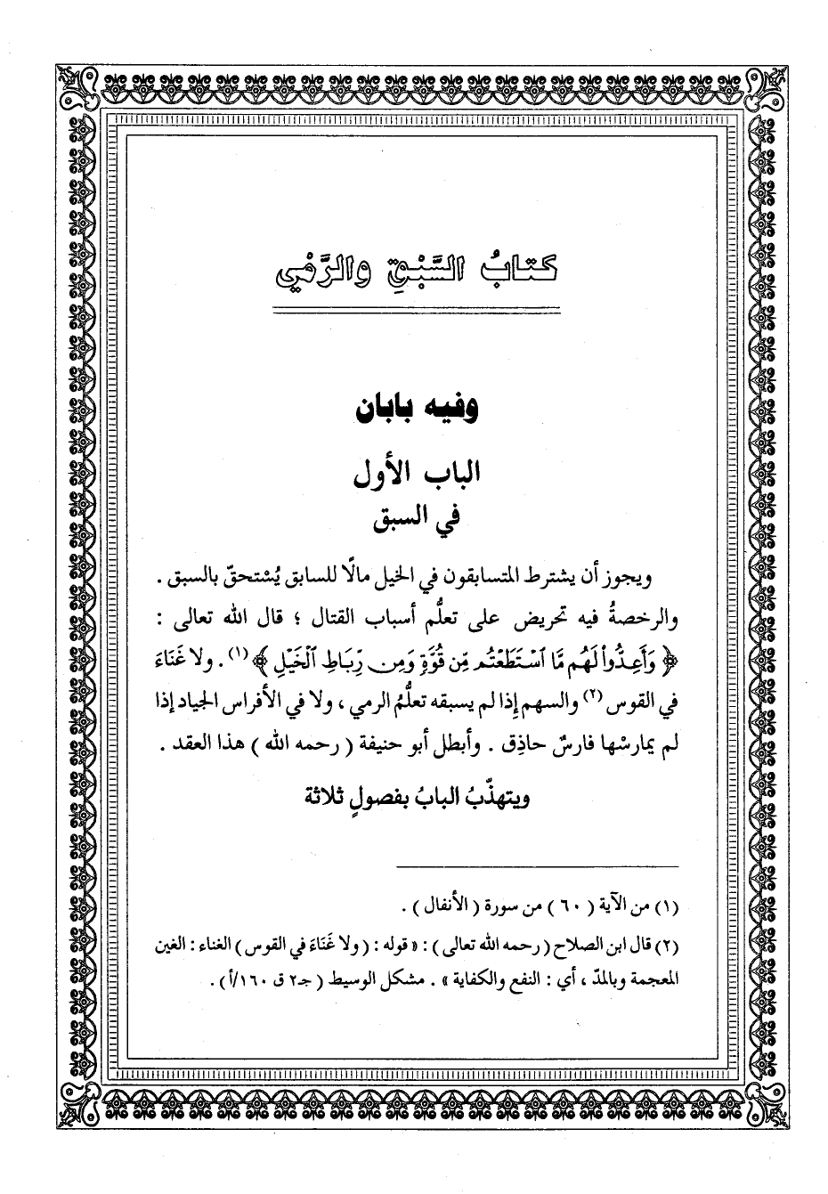 وَفِيه بَابَانِ الْبَاب الأول فِي السَّبق