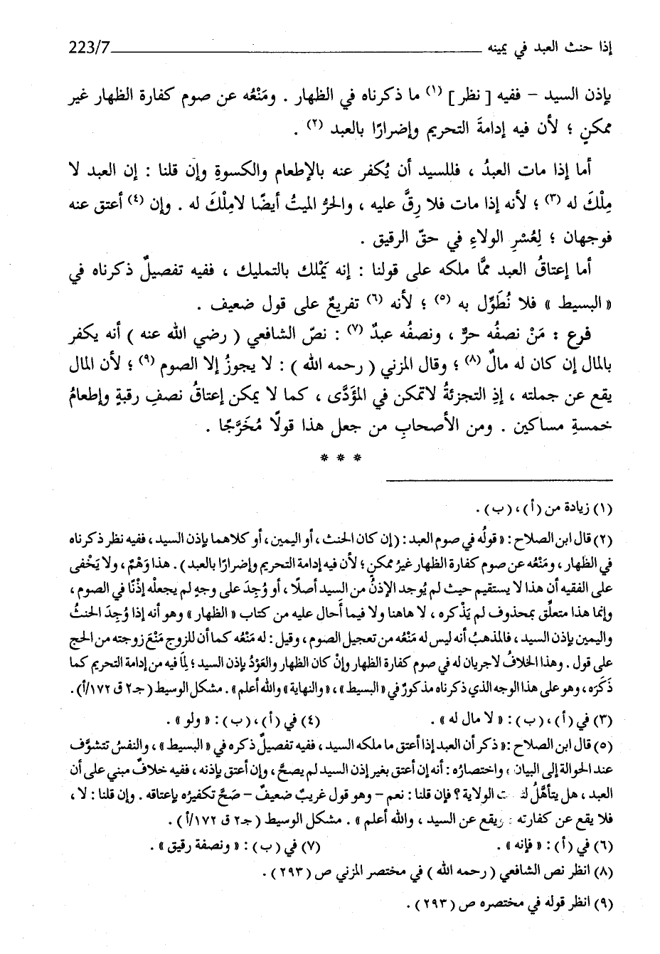 بِإِذن السَّيِّد فَفِيهِ نظر مَا ذَكرْنَاهُ فِي الظِّهَار وَمنعه عَن صَوْم كَفَّارَة الظِّهَار غير مُمكن لِأَن فِيهِ إدامة التَّحْرِيم وإضرارا بِالْعَبدِ