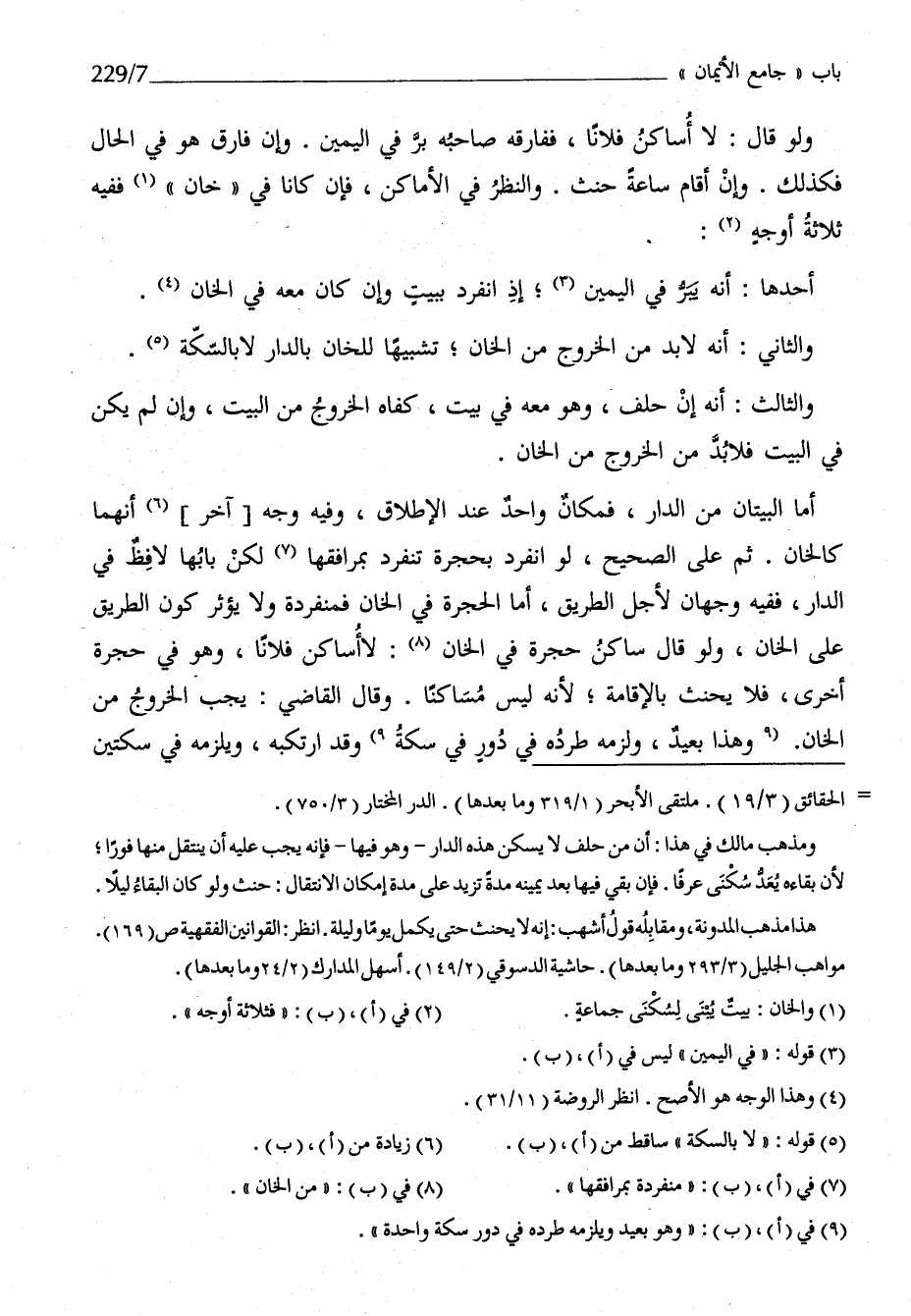 وَلَو قَالَ لَا أساكن فلَانا ففارقه صَاحبه بر فِي الْيَمين وَإِن فَارق هُوَ فِي الْحَال فَكَذَلِك وَإِن أَقَامَ سَاعَة حنث وَالنَّظَر فِي الْأَمَاكِن فَإِن كَانَا فِي خَان فَفِيهِ ثَلَاثَة أوجه أَحدهَا أَنه يبر فِي الْيَمين إِذْ انْفَرد بِبَيْت وَإِن كَانَ مَعَه فِي الخان وَالثَّانِي أَنه لَا بُد من الْخُرُوج من الخان تَشْبِيها للخان بِالدَّار لَا بالسكة وَالثَّالِث أَنه إِن حلف وَهُوَ مَعَه فِي بَيت كَفاهُ الْخُرُوج من الْبَيْت وَإِن لم يكن فِي الْبَيْت فَلَا بُد من الْخُرُوج من الخان