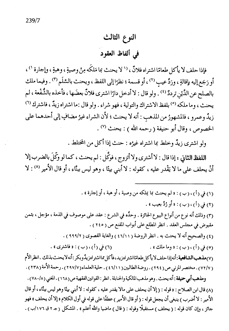 النَّوْع الثَّالِث فِي أَلْفَاظ الْعُقُود