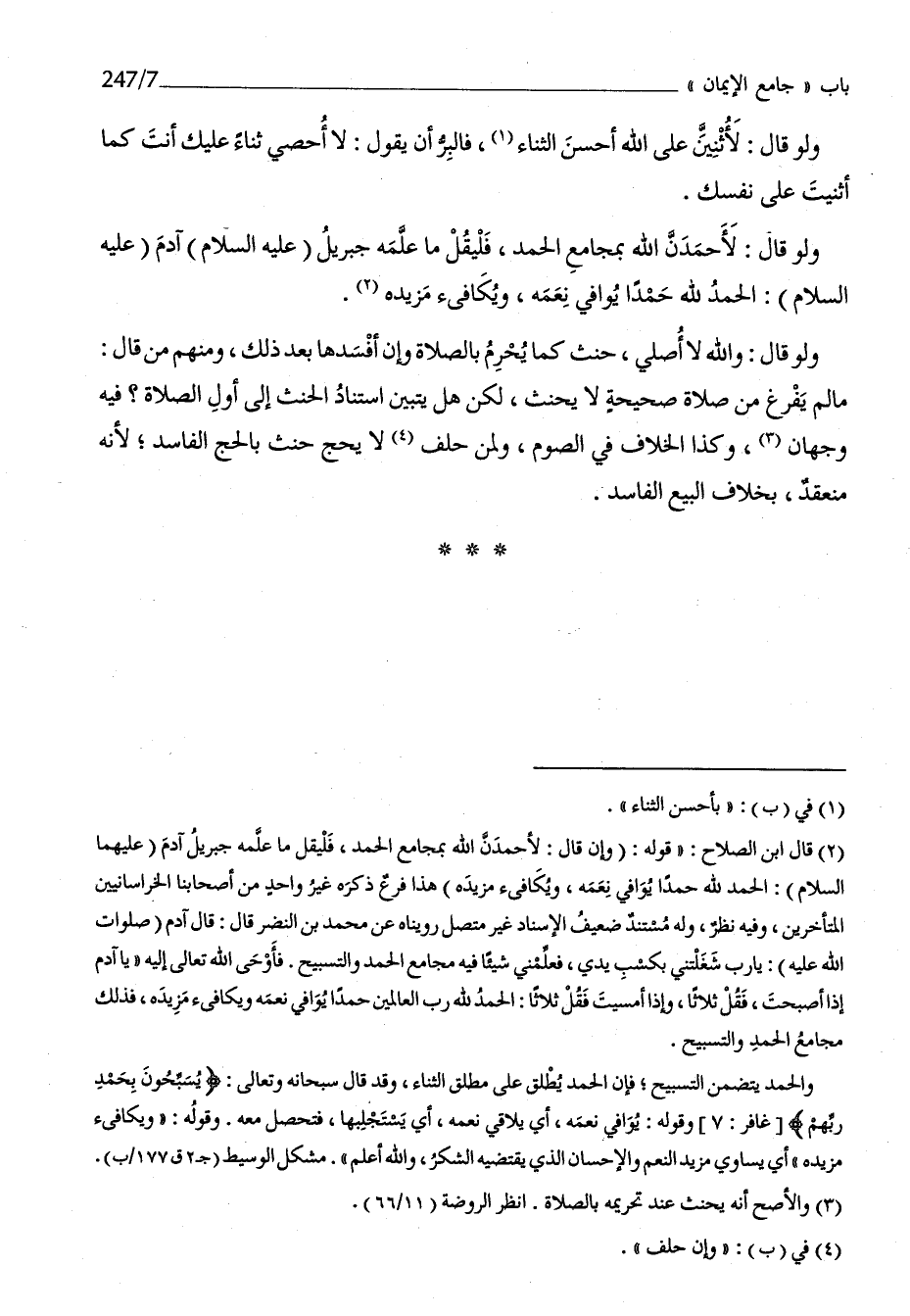 وَلَو قَالَ لأنثين على الله أحسن الثَّنَاء فالبر أَن يَقُول لَا أحصي ثَنَاء عَلَيْك أَنْت كَمَا أثنيت على نَفسك