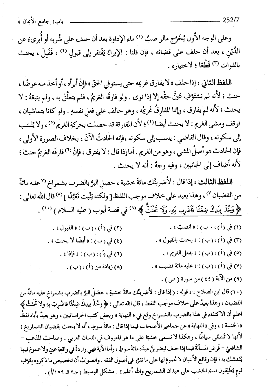 اللَّفْظ الثَّالِث إِذا قَالَ لأضربنك مائَة خَشَبَة حصل الْبر بِالضَّرْبِ بشمراخ عَلَيْهِ مائَة من القضبان وَهَذَا بعيد على خلاف مُوجب اللَّفْظ وَلكنه يثبت تعبدا قَالَ الله تَعَالَى {وَخذ بِيَدِك ضغثا فَاضْرب بِهِ وَلَا تَحنث} فِي قصَّة أَيُّوب عَلَيْهِ السَّلَام