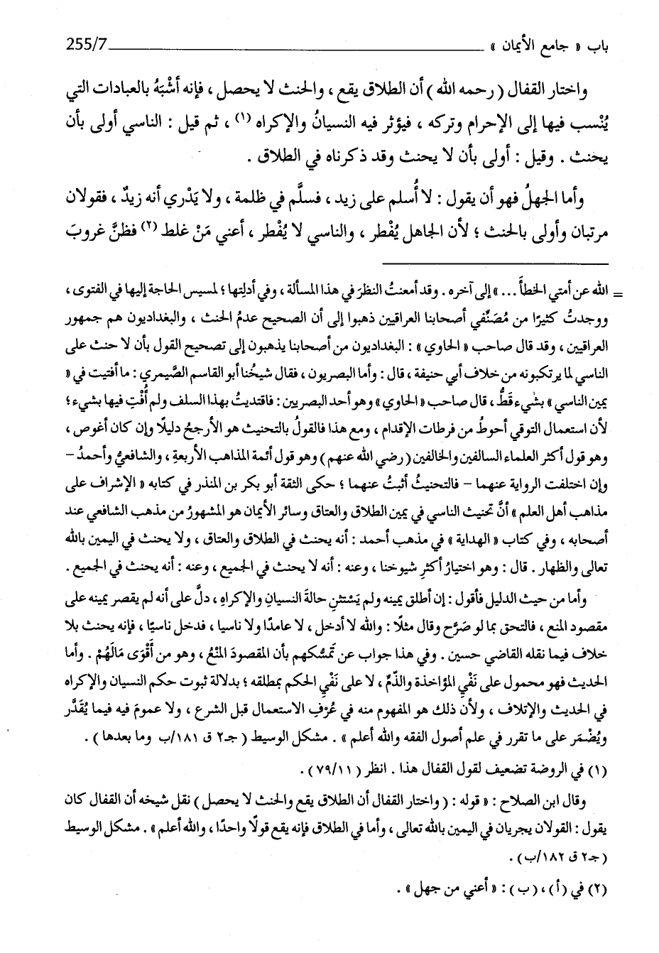وَاخْتَارَ الْقفال رَحمَه الله أَن الطَّلَاق يَقع والحنث لَا يحصل فَإِنَّهُ أشبه بالعبادات الَّتِي ينْسب فِيهَا إِلَى الْإِحْرَام وَتَركه فيؤثر فِيهِ النسْيَان وَالْإِكْرَاه ثمَّ قيل النَّاسِي أولى بِأَن يَحْنَث وَقيل أولى بِأَن لَا يَحْنَث وَقد ذَكرْنَاهُ فِي الطَّلَاق