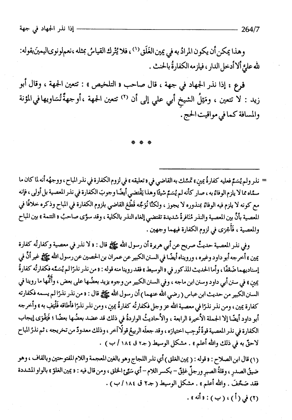 فرع إِذا نذر الْجِهَاد فِي جِهَة قَالَ صَاحب التَّلْخِيص تتَعَيَّن الْجِهَة وَقَالَ أَبُو زيد لَا تتَعَيَّن وميل الشَّيْخ أبي عَليّ إِلَى أَن تتَعَيَّن الْجِهَة أَو جِهَة تساويها فِي الْمُؤْنَة والمسافة كَمَا فِي مَوَاقِيت الْحَج