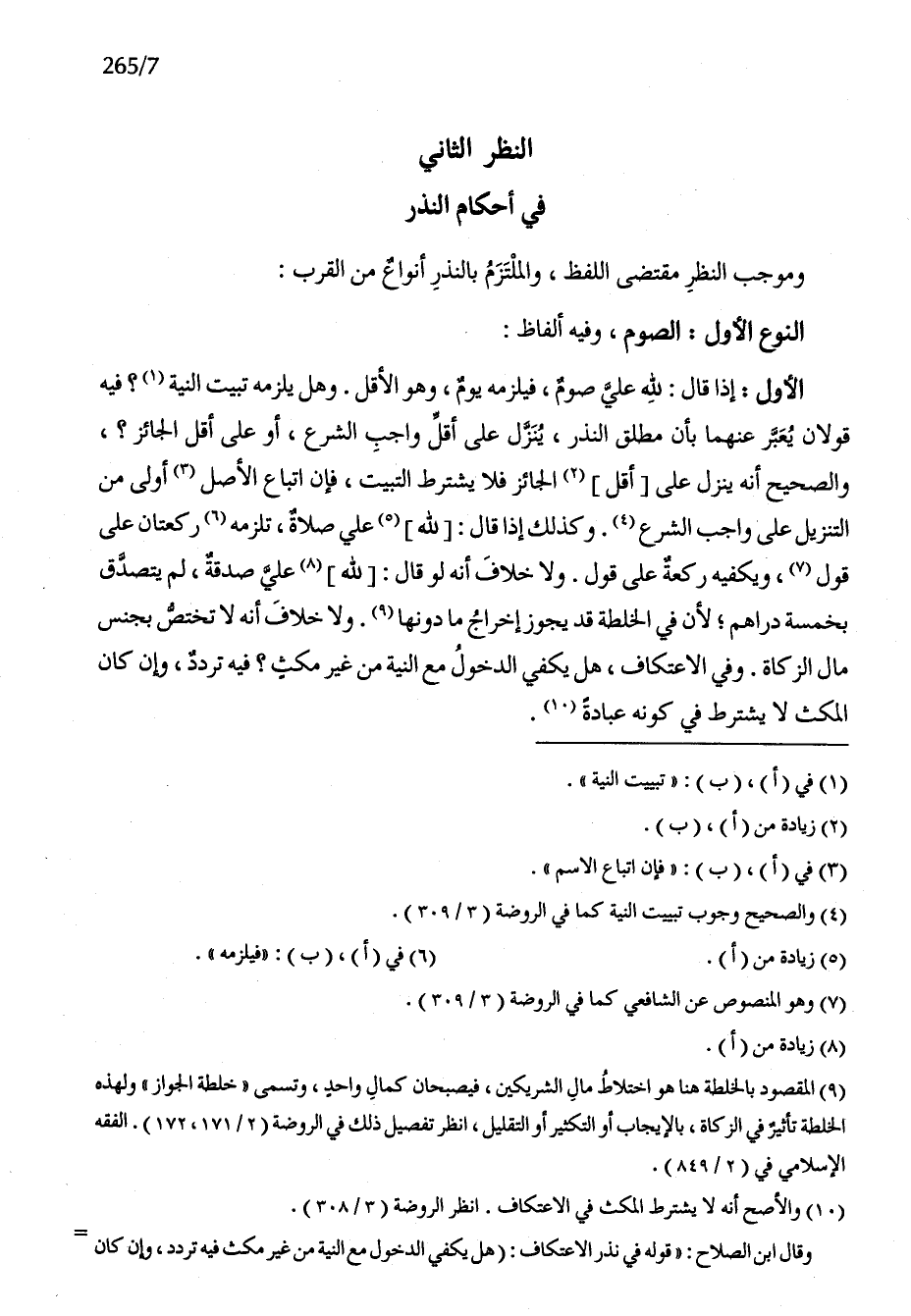 النّظر الثَّانِي فِي أَحْكَام النّذر