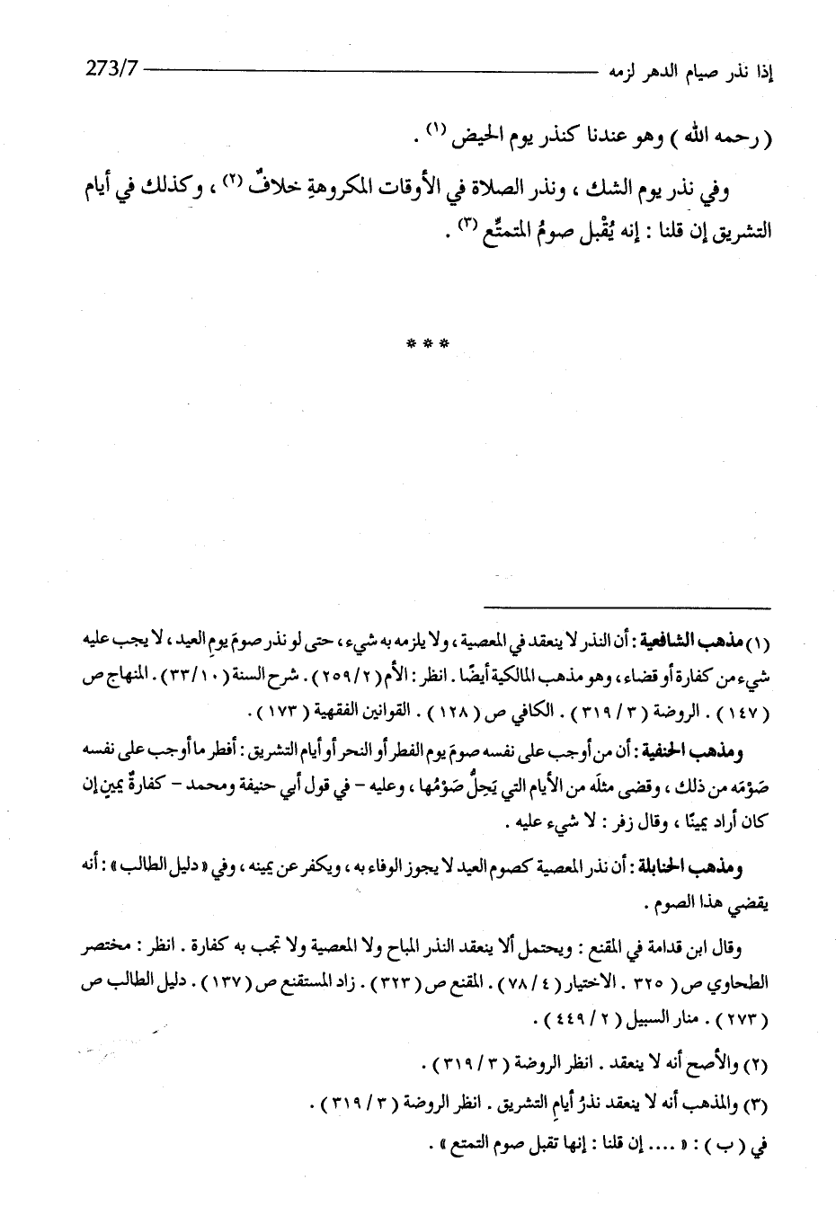 رَحمَه الله وَهُوَ عندنَا كنذر يَوْم الْحيض وَفِي نذر يَوْم الشَّك وَنذر الصَّلَاة فِي الْأَوْقَات الْمَكْرُوهَة خلاف وَكَذَلِكَ فِي أَيَّام التَّشْرِيق إِن قُلْنَا إِنَّه يقبل صَوْم الْمُتَمَتّع