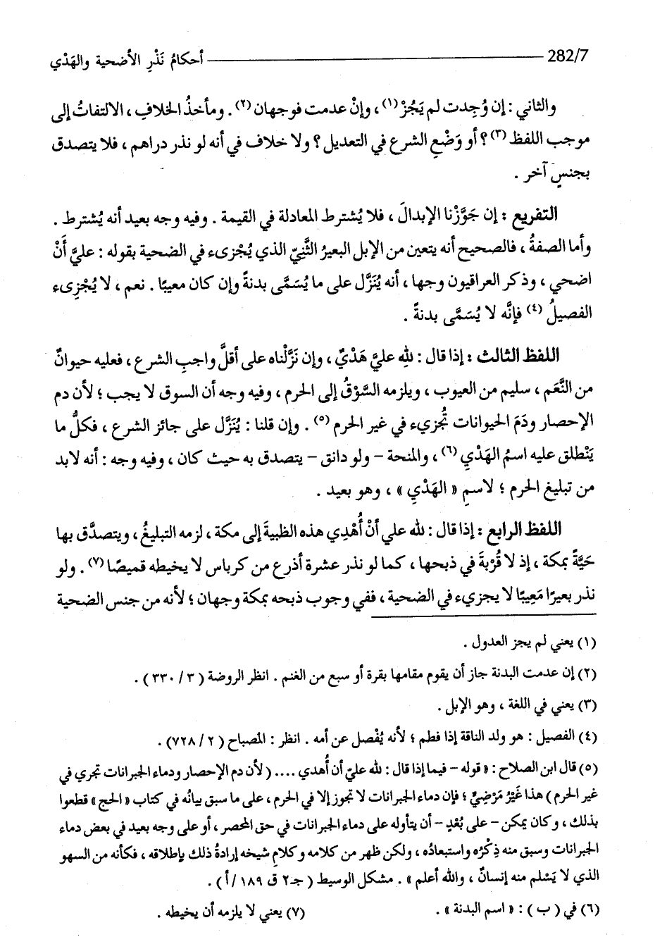 إِن جَوَّزنَا الْإِبْدَال فَلَا يشْتَرط المعادلة فِي الْقيمَة وَفِيه وَجه بعيد أَنه يشْتَرط وَأما الصّفة فَالصَّحِيح أَنه يتَعَيَّن من الْإِبِل الْبَعِير الثني الَّذِي يجزىء فِي الضحية بقوله عَليّ أَن أضحي وَذكر الْعِرَاقِيُّونَ وَجها أَنه ينزل على مَا يُسمى بَدَنَة وَإِن كَانَ معيبا نعم لَا يجزىء الفصيل فَإِنَّهُ لَا يُسمى بَدَنَة