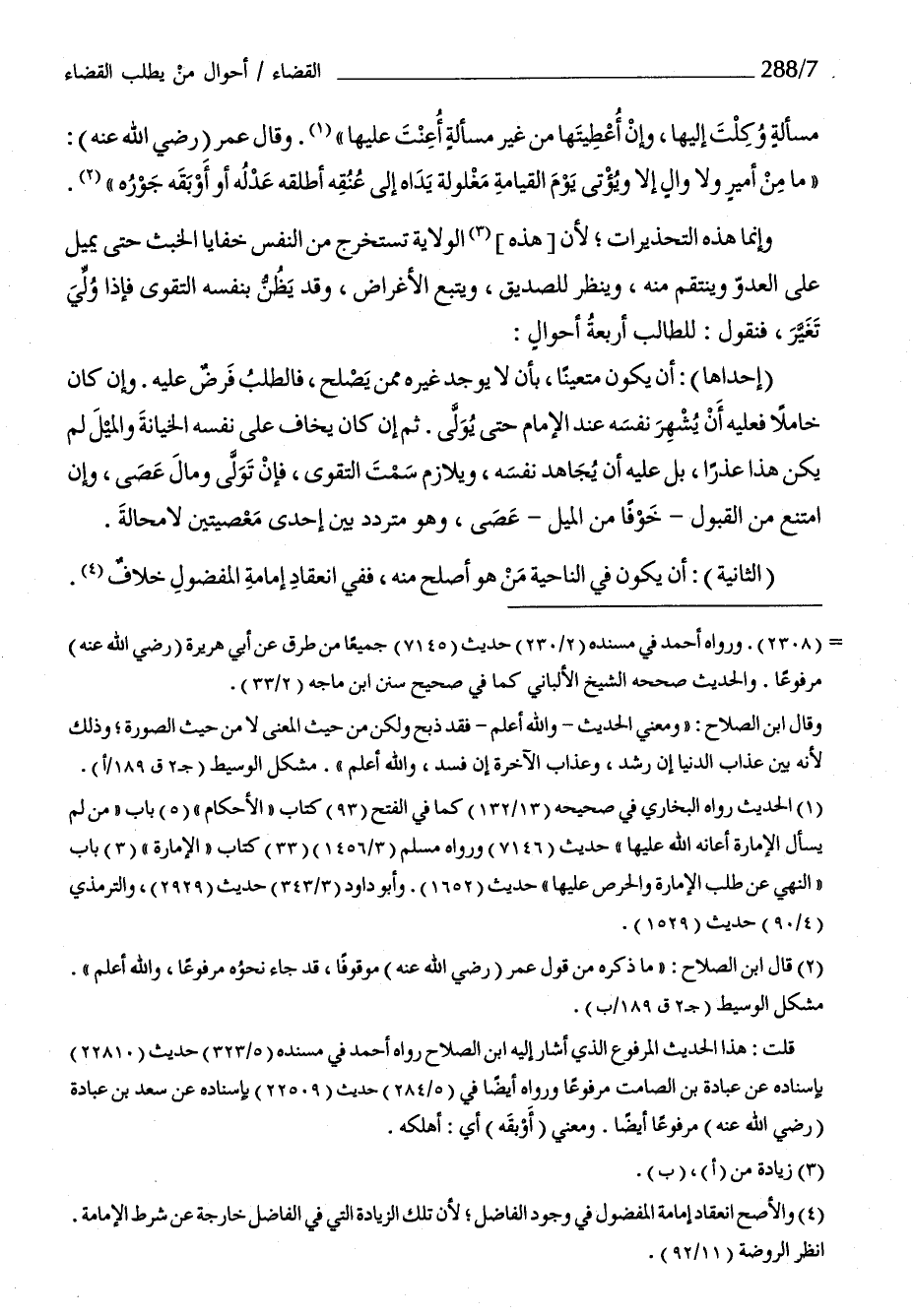 وَإِنَّمَا هَذِه التحذيرات لِأَن هَذِه الْولَايَة تستخرج من النَّفس خفايا الْخبث حَتَّى يمِيل على الْعَدو وينتقم مِنْهُ وَينظر للصديق وَيتبع الْأَغْرَاض وَقد يظنّ بِنَفسِهِ التَّقْوَى فَإِذا ولي تغير فَنَقُول للطَّالِب أَرْبَعَة أَحْوَال