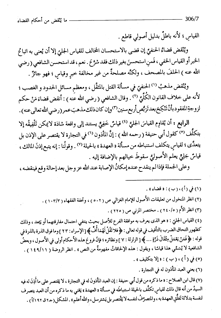 الرَّابِع أَن يُقَاوم الْقيَاس الْجَلِيّ قِيَاس خَفِي يسْتَند إِلَى وَاقعَة شَاذَّة لَا يُمكن تلفيقه إِلَّا بتكلف كَقَوْل أبي حنيفَة رَحمَه الله إِن الْمَأْذُون فِي التِّجَارَة لَا يقْتَصر على الْإِذْن بل يتَعَدَّى لقياس يتَكَلَّف استنباطه من مَسْأَلَة الْعهْدَة بالحيلة وَقَوْلنَا إِنَّه يتبع إِذن الْمَالِك قِيَاس جلي يعلم الأصولي سُقُوط خيالهم بِالْإِضَافَة إِلَيْهِ