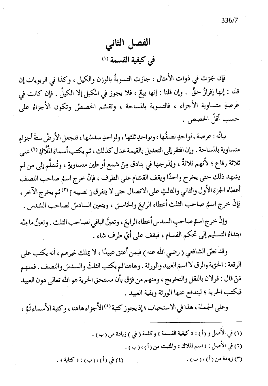 الْفَصْل الثَّانِي فِي كَيْفيَّة الْقِسْمَة