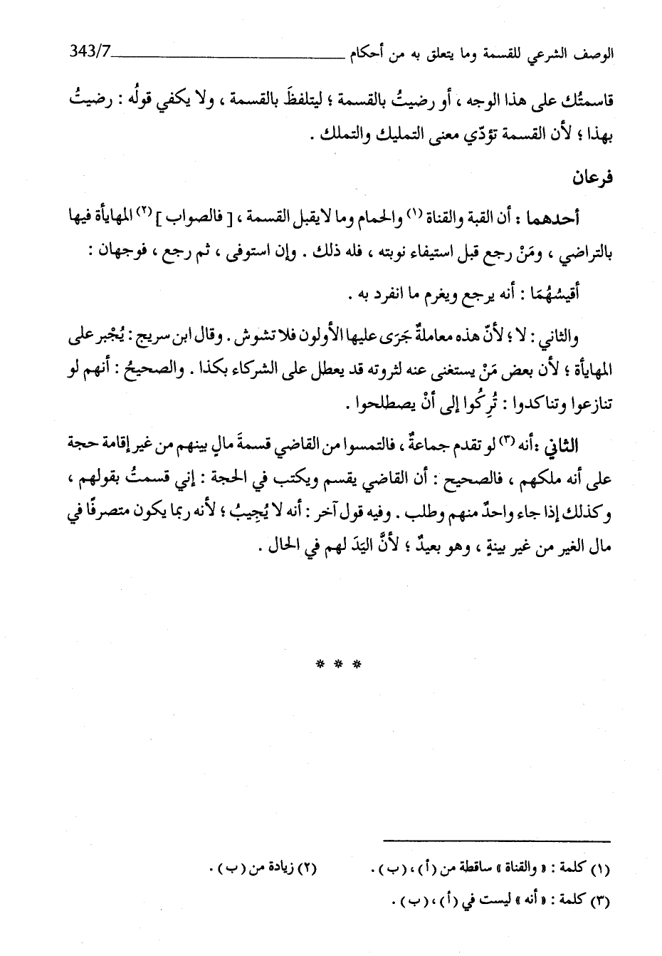 أَحدهمَا أَن الْقبَّة والقناة وَالْحمام وَمَا لَا يقبل الْقِسْمَة فَالصَّوَاب الْمُهَايَأَة فِيهَا بِالتَّرَاضِي وَمن رَجَعَ قبل اسْتِيفَاء نوبَته فَلهُ ذَلِك وَإِن استوفى ثمَّ رَجَعَ فَوَجْهَانِ أقيسهما أَنه يرجع وَيغرم مَا انْفَرد بِهِ