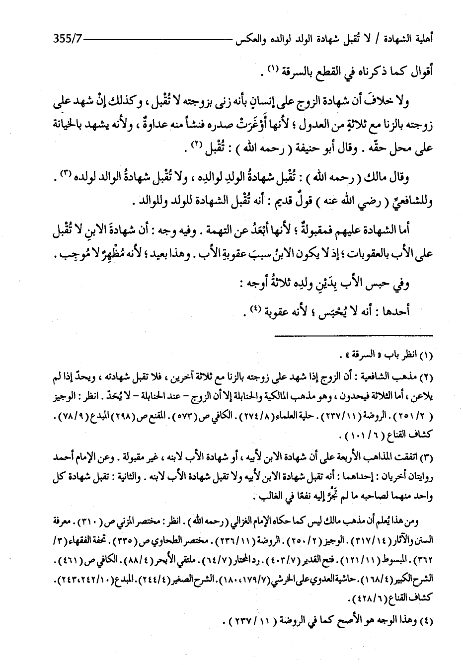 أما الشَّهَادَة عَلَيْهِم فمقبولة لِأَنَّهَا أبعد عَن التُّهْمَة وَفِيه وَجه أَن شَهَادَة الإبن لَا تقبل على الْأَب بالعقوبات إِذْ لَا يكون الإبن سَبَب عُقُوبَة الْأَب وَهَذَا بعيد لِأَنَّهُ مظهر لَا مُوجبا