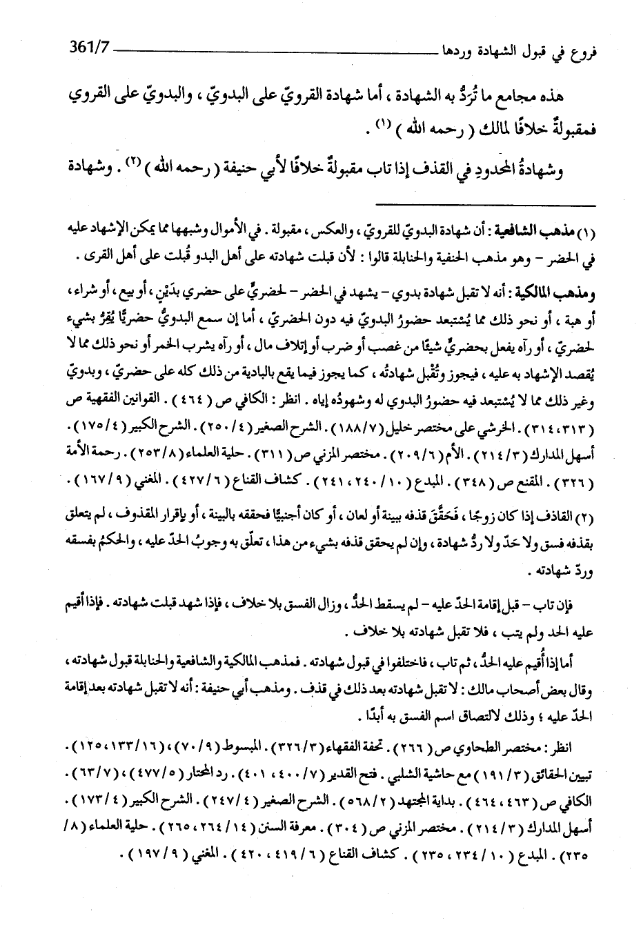 هَذِه مجامع مَا ترد بِهِ الشَّهَادَة أما شَهَادَة الْقَرَوِي على البدوي والبدوي على الْقَرَوِي فمقبولة خلافًا لمَالِك رَحمَه الله