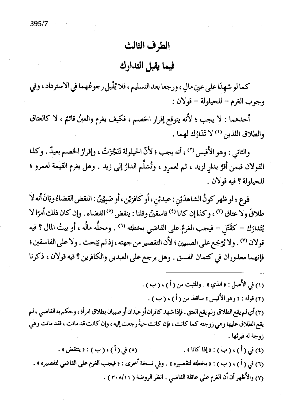 الطّرف الثَّالِث فِيمَا يقبل التَّدَارُك