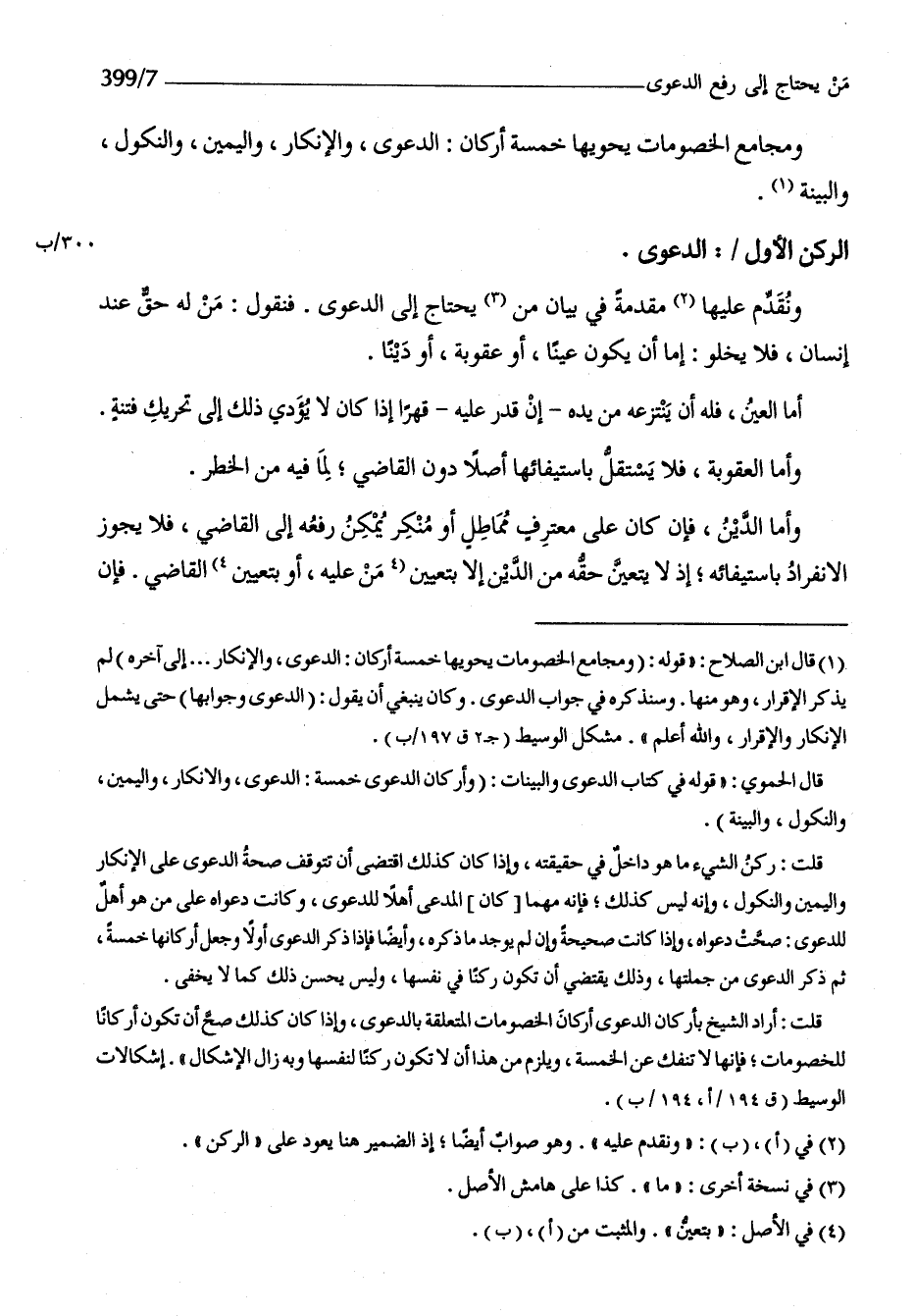 ونقدم عَلَيْهَا مُقَدّمَة فِي بَيَان من يحْتَاج إِلَى الدَّعْوَى فَنَقُول من لَهُ حق عِنْد إِنْسَان فَلَا يَخْلُو إِمَّا أَن يكون عينا أَو عُقُوبَة أَو دينا