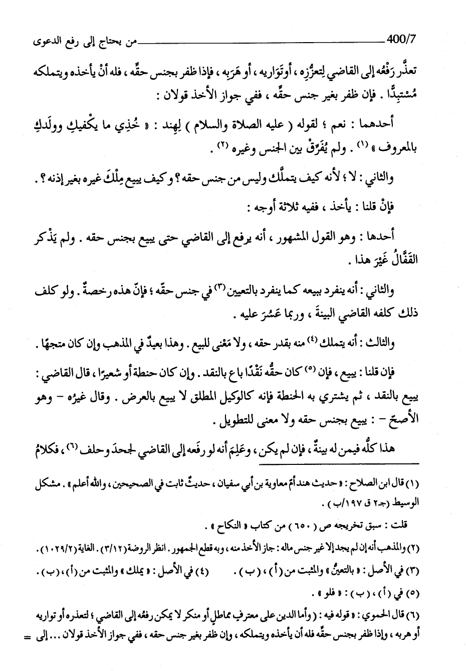تعذر رَفعه إِلَى القَاضِي لتعززه أَو تواريه أَو هربه فَإِذا ظفر بِجِنْس حَقه فَلهُ أَن يَأْخُذهُ ويتملكه مستبدا فَإِن ظفر بِغَيْر جنس حَقه فَفِي جَوَاز الْأَخْذ قَولَانِ