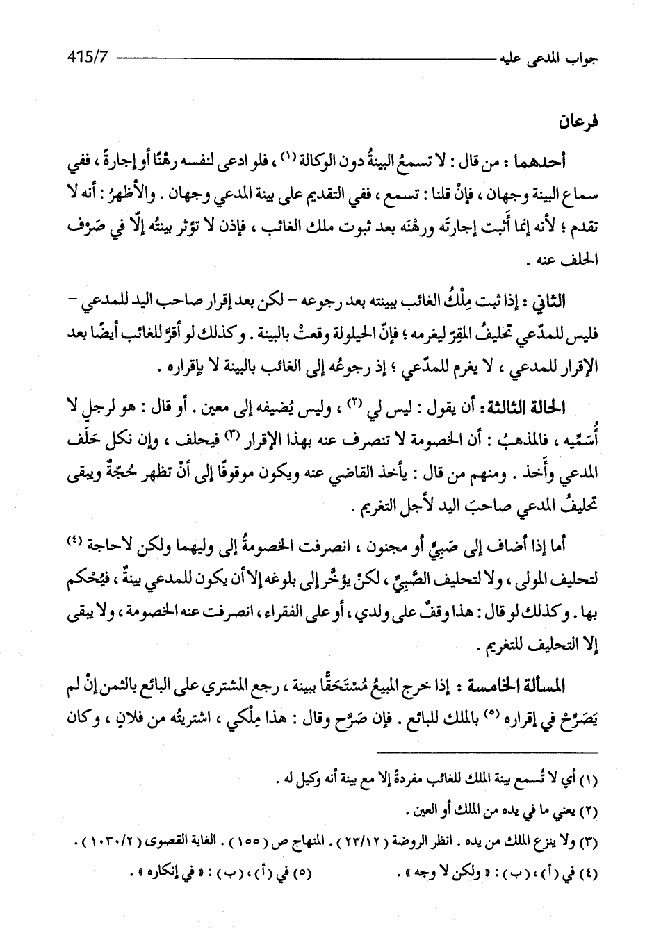 الْمَسْأَلَة الْخَامِسَة إِذا خرج الْمَبِيع مُسْتَحقّا بِبَيِّنَة رَجَعَ المُشْتَرِي على البَائِع بِالثّمن إِن لم يُصَرح فِي إِقْرَاره بِالْملكِ للْبَائِع فَإِن صرح وَقَالَ هَذَا ملكي اشْتَرَيْته من فلَان وَكَانَ