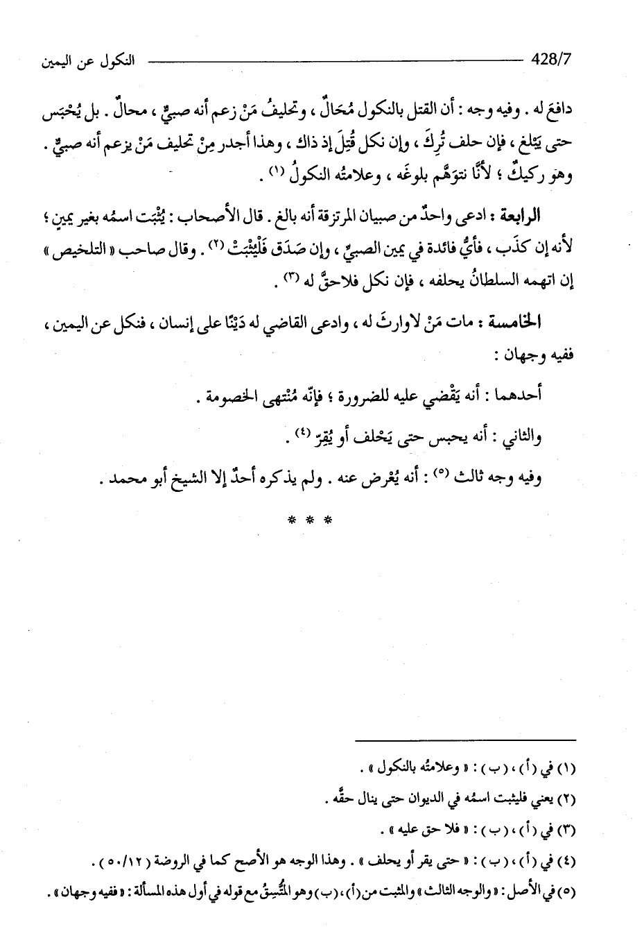 الرَّابِعَة ادّعى وَاحِد من صبيان المرتزقة أَنه بَالغ قَالَ الْأَصْحَاب يثبت اسْمه بِغَيْر يَمِين لِأَنَّهُ إِن كذب فَأَي فَائِدَة فِي يَمِين الصَّبِي وَإِن صدق فليثبت وَقَالَ صَاحب التَّلْخِيص إِن اتهمه السُّلْطَان يحلفهُ فَإِن نكل فَلَا حلق لَهُ
