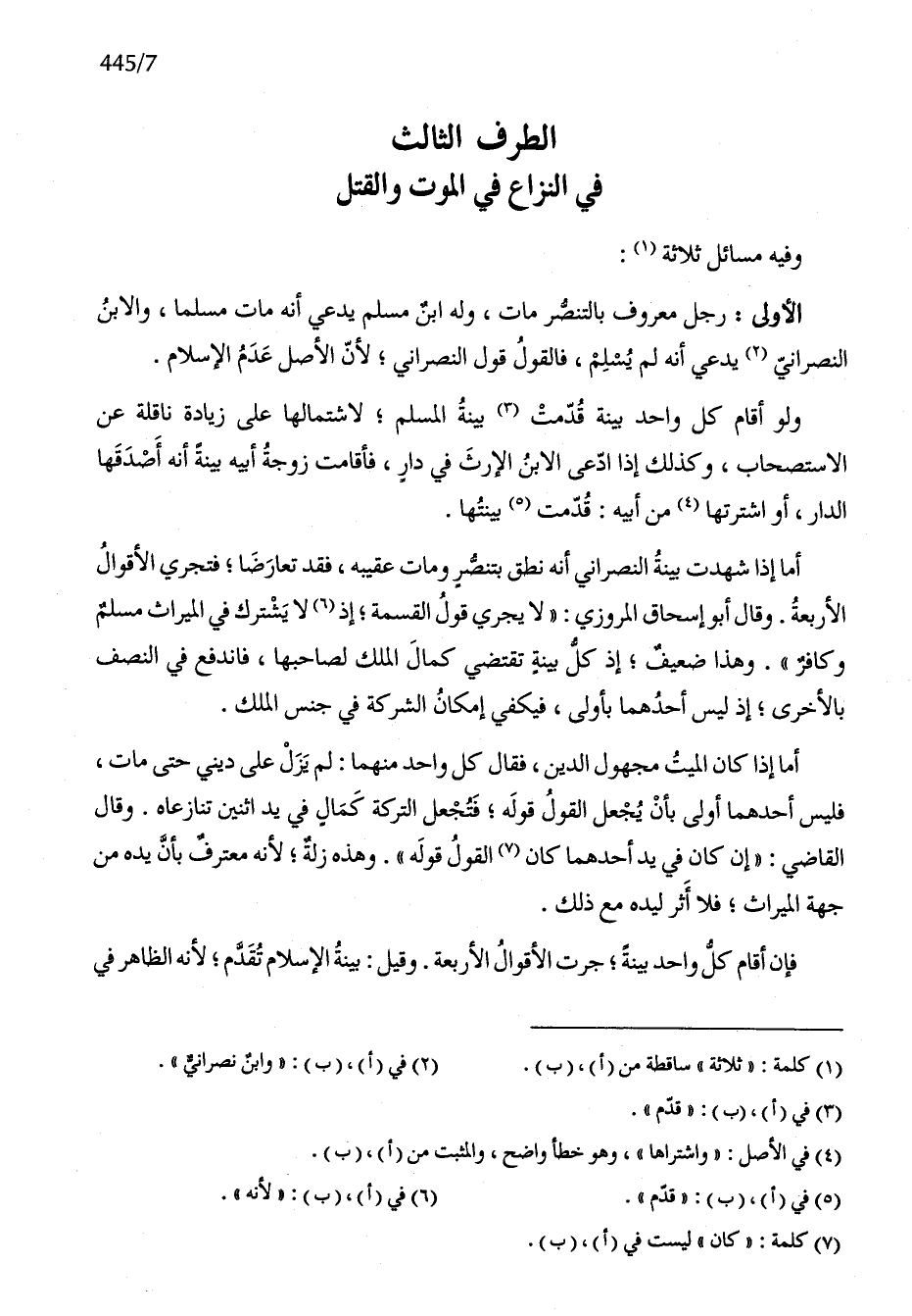 الطّرف الثَّالِث فِي النزاع فِي الْمَوْت وَالْقَتْل
