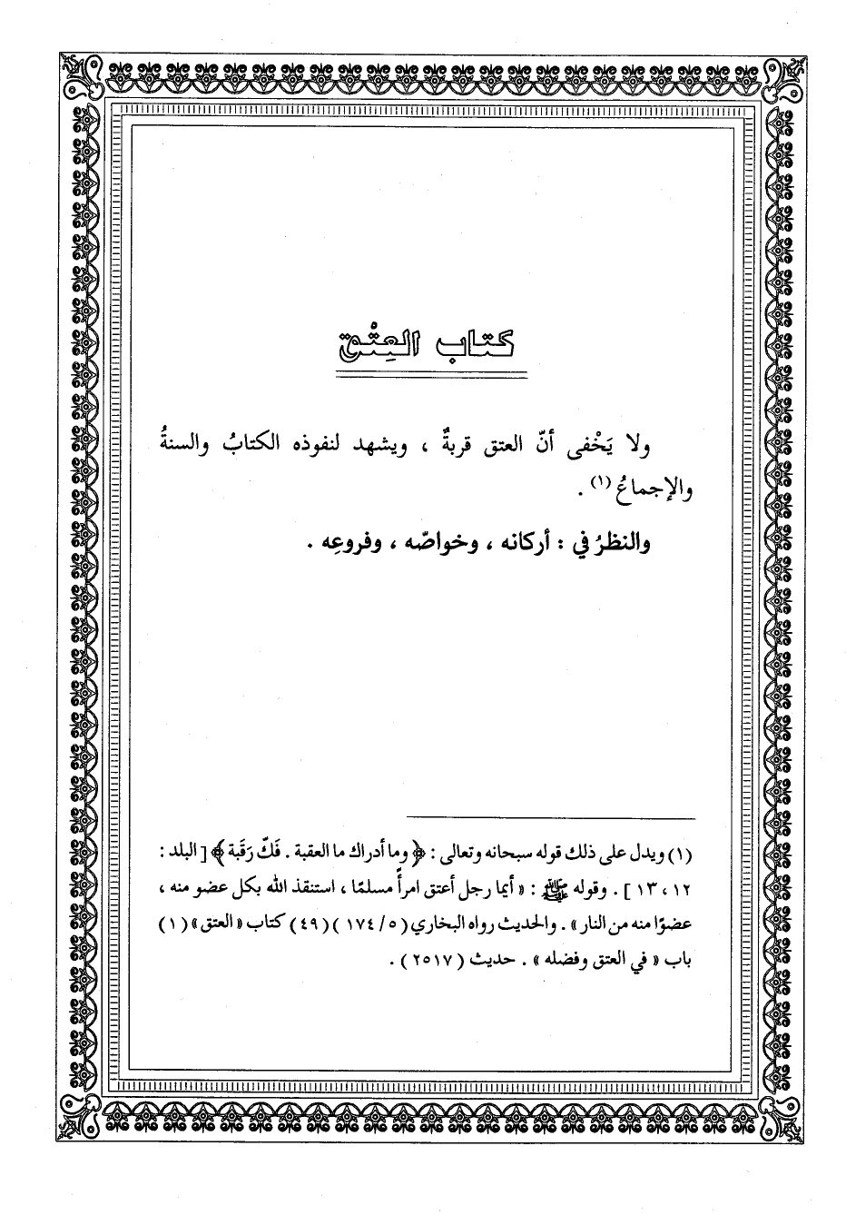 وَلَا يخفى أَن الْعتْق قربَة وَيشْهد لنفوذه الْكتاب وَالسّنة وَالْإِجْمَاع وَالنَّظَر فِي أَرْكَانه وخواصه وفروعه
