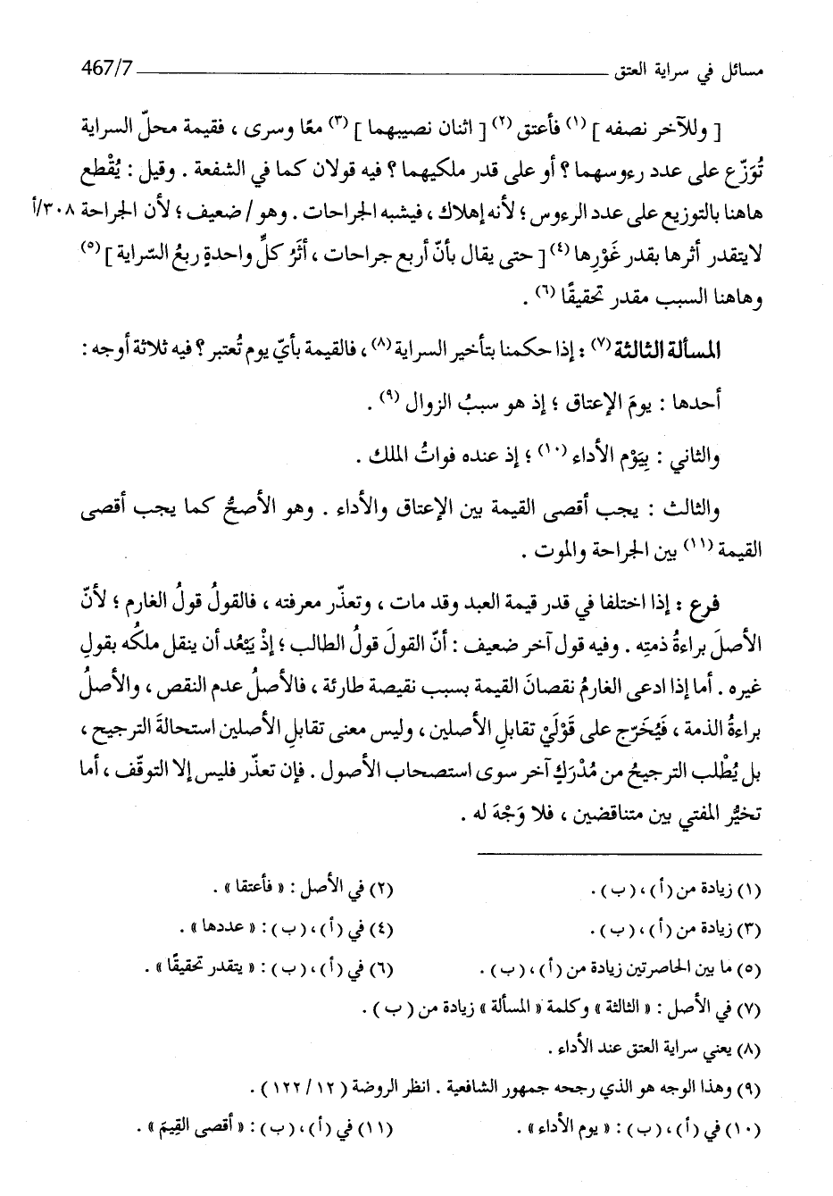 الْمَسْأَلَة الثَّالِثَة إِذا حكمنَا بِتَأْخِير السَّرَايَة فَالْقيمَة بِأَيّ يَوْم تعْتَبر فِيهِ ثَلَاثَة أوجه