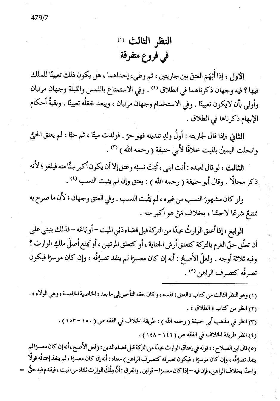 النّظر الثَّالِث فِي فروع مُتَفَرِّقَة
