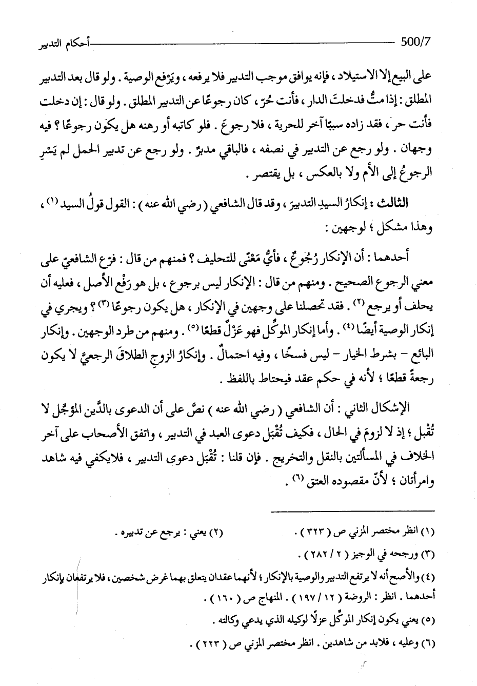 الثَّالِث إِنْكَار السَّيِّد التَّدْبِير وَقد قَالَ الشَّافِعِي رَضِي الله عَنهُ القَوْل قَول السَّيِّد وَهَذَا مُشكل لوَجْهَيْنِ