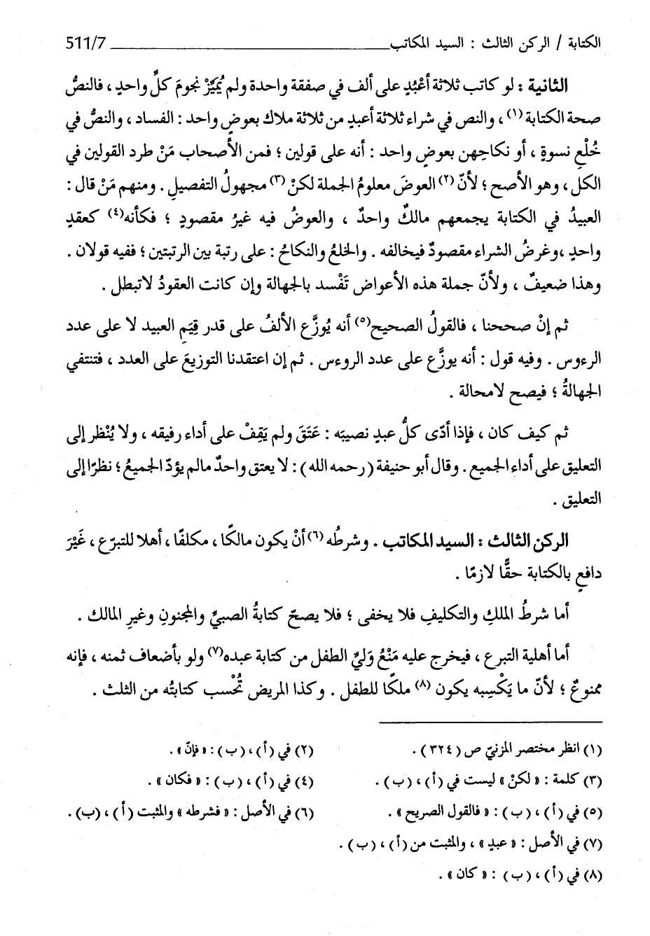 الرُّكْن الثَّالِث السَّيِّد الْمكَاتب وَشَرطه أَن يكون مَالِكًا مُكَلّفا أَهلا للتبرع غير دَافع بِالْكِتَابَةِ حَقًا لَازِما