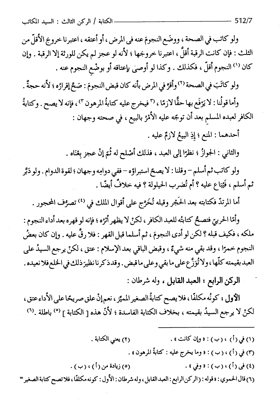 الرُّكْن الرَّابِع العَبْد الْقَابِل وَله شَرْطَانِ