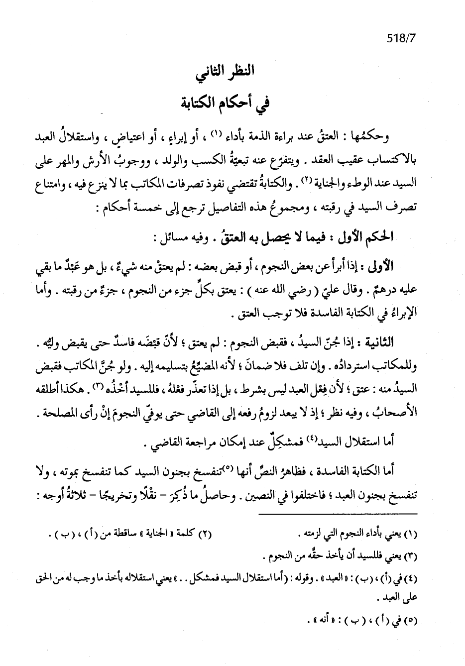 النّظر الثَّانِي فِي أَحْكَام الْكِتَابَة