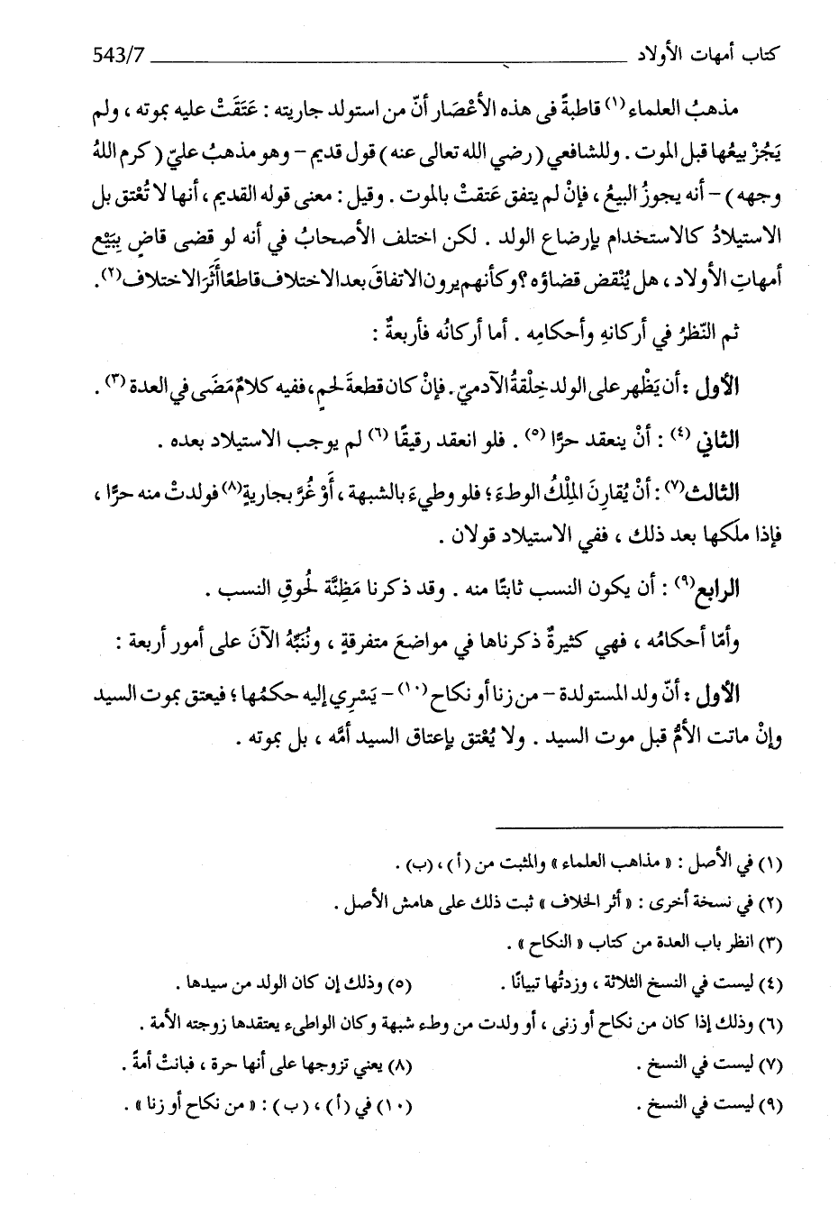 مَذْهَب الْعلمَاء قاطبة فِي هَذِه الْأَعْصَار أَن من استولد جَارِيَته عتقت عَلَيْهِ بِمَوْتِهِ وَلم يجز بيعهَا قبل الْمَوْت وَللشَّافِعِيّ رَضِي الله تَعَالَى عَنهُ قَول قديم وَهُوَ مَذْهَب عَليّ كرم الله وَجهه أَنه يجوز البيع فَإِن لم يتَّفق عتقت بِالْمَوْتِ وَقيل معنى قَوْله الْقَدِيم أَنَّهَا لَا تعْتق بل الإستيلاد كالإستخدام بإرضاع الْوَلَد لَكِن اخْتلف الْأَصْحَاب فِي أَنه لَو قضى قَاض بِبيع أُمَّهَات الْأَوْلَاد هَل ينْقض قَضَاؤُهُ وَكَأَنَّهُم يرَوْنَ الإتفاق بعد الإختلاف قَاطعا أثر الِاخْتِلَاف ثمَّ النّظر فِي أَرْكَانه وَأَحْكَامه أما أَرْكَانه فَأَرْبَعَة