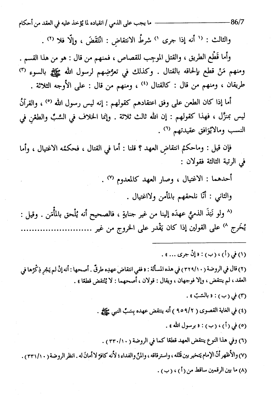 أما إِذا كَانَ الطعْن على وفْق اعْتِقَادهم كَقَوْلِهِم إِنَّه لي رَسُول الله وَالْقُرْآن لَيْسَ بمنزل فَهَذَا كَقَوْلِهِم إِن الله ثَالِث ثَلَاثَة وَإِنَّمَا الْخلاف فِي السب والطعن فِي النّسَب وَمَا لَا يُوَافق عقيدتهم فَإِن قيل وَمَا حكم انْتِقَاض الْعَهْد قُلْنَا أما فِي الْقِتَال فَحكمه الإغتيال وَأما فِي الرُّتْبَة الثَّالِثَة فَقَوْلَانِ أَحدهمَا الإغتيال وَصَارَ الْعَهْد كَالْمَعْدُومِ
