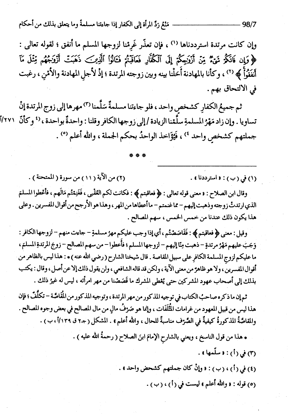 ثمَّ جَمِيع الْكفَّار كشخص وَاحِد فَلَو جاءتنا مسلمة سلمنَا مهرهَا إِلَى زوج الْمُرْتَدَّة إِن تَسَاويا وَإِن زَاد مهر الْمسلمَة سلمنَا الزِّيَادَة إِلَى زَوجهَا الْكَافِر وَقُلْنَا وَاحِدَة بِوَاحِدَة وَكَأن جُمْلَتهمْ كشخص وَاحِد فيؤاخذ الْوَاحِد بِحكم الْجُمْلَة وَالله أعلم صلوَات الله عَلَيْهِم كرم الله وَجهه الله تبَارك وَتَعَالَى الرب عز وَجل