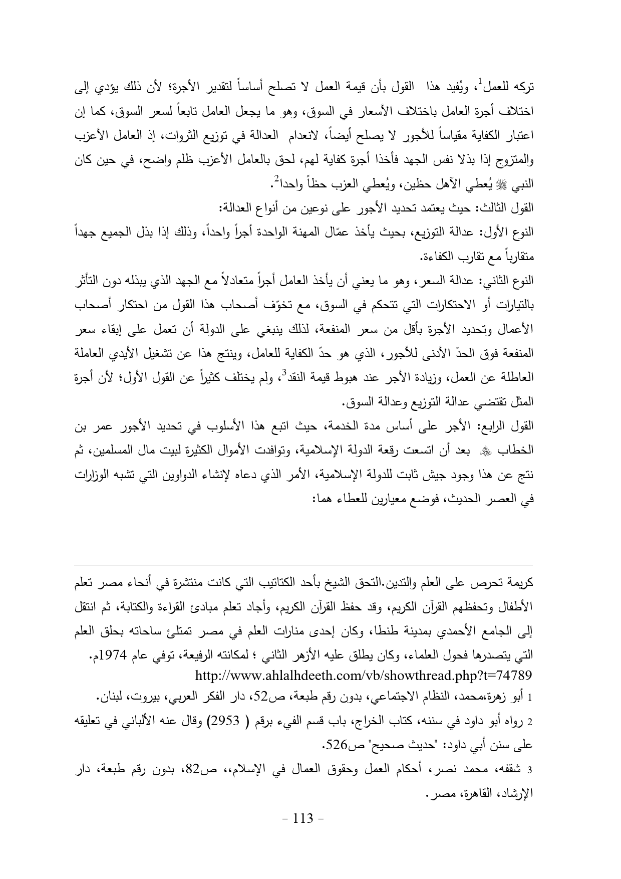(¬3) شقفه، محمد نصر، أحكام العمل وحقوق العمال في الإسلام،، ص82، بدون رقم طبعة، دار الإرشاد، القاهرة، مصر.