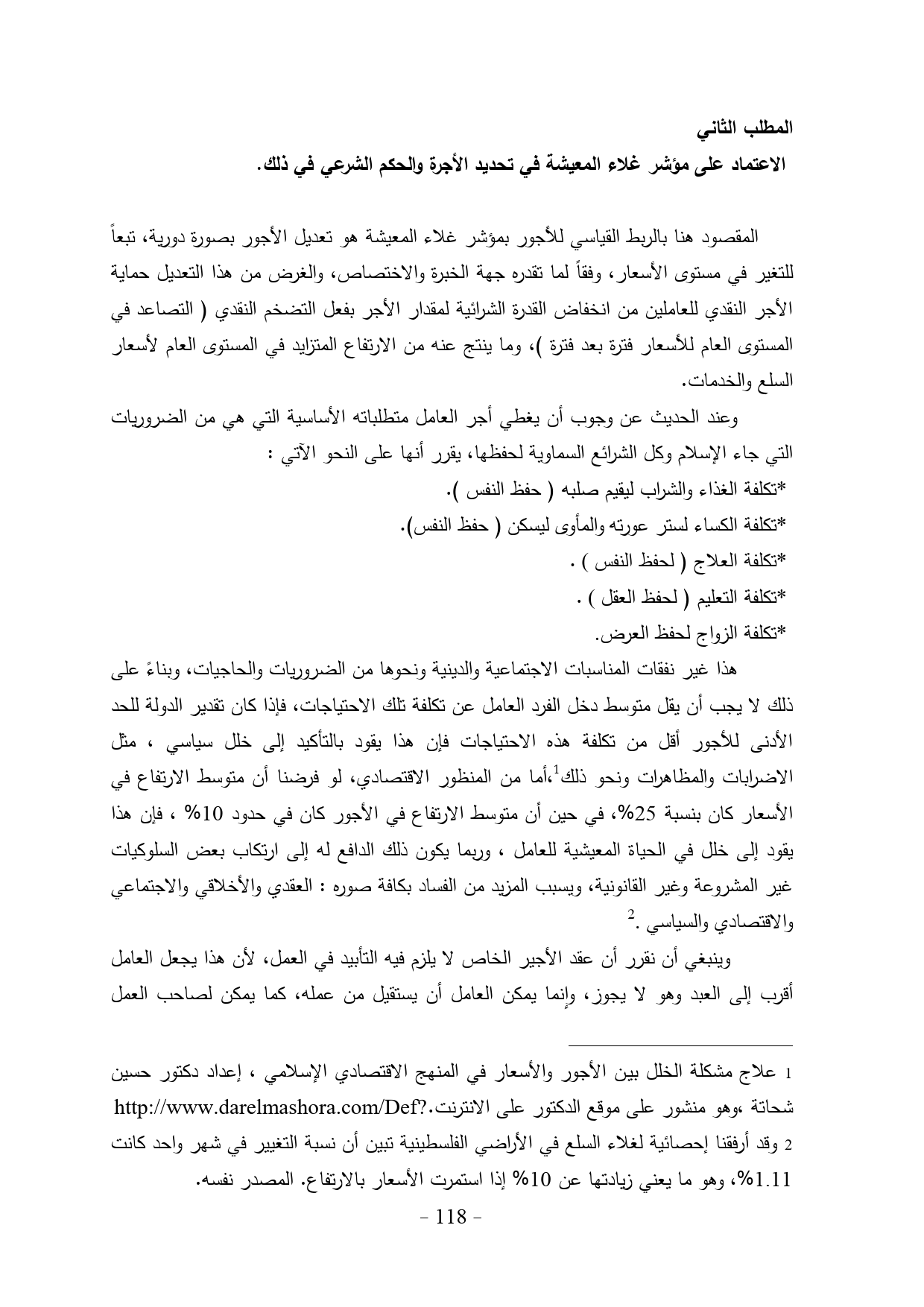 (¬1) علاج مشكلة الخلل بين الأجور والأسعار في المنهج الاقتصادي الإسلامي، إعداد دكتور حسين شحاتة، وهو منشور على موقع الدكتور على الانترنت. http://www.darelmashora.com/Def?