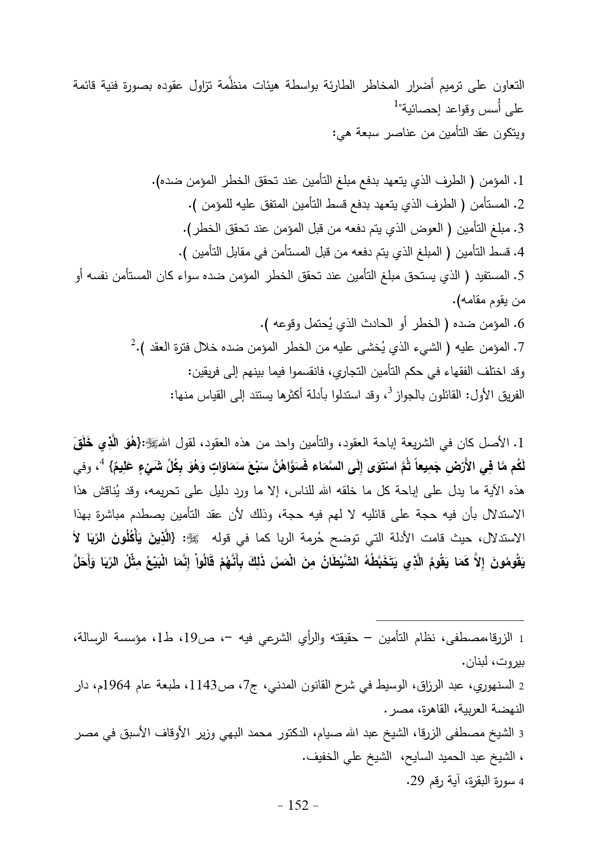 (¬1) الزرقا، مصطفى، نظام التأمين - حقيقته والرأي الشرعي فيه -، ص19، ط1، مؤسسة الرسالة، بيروت، لبنان.