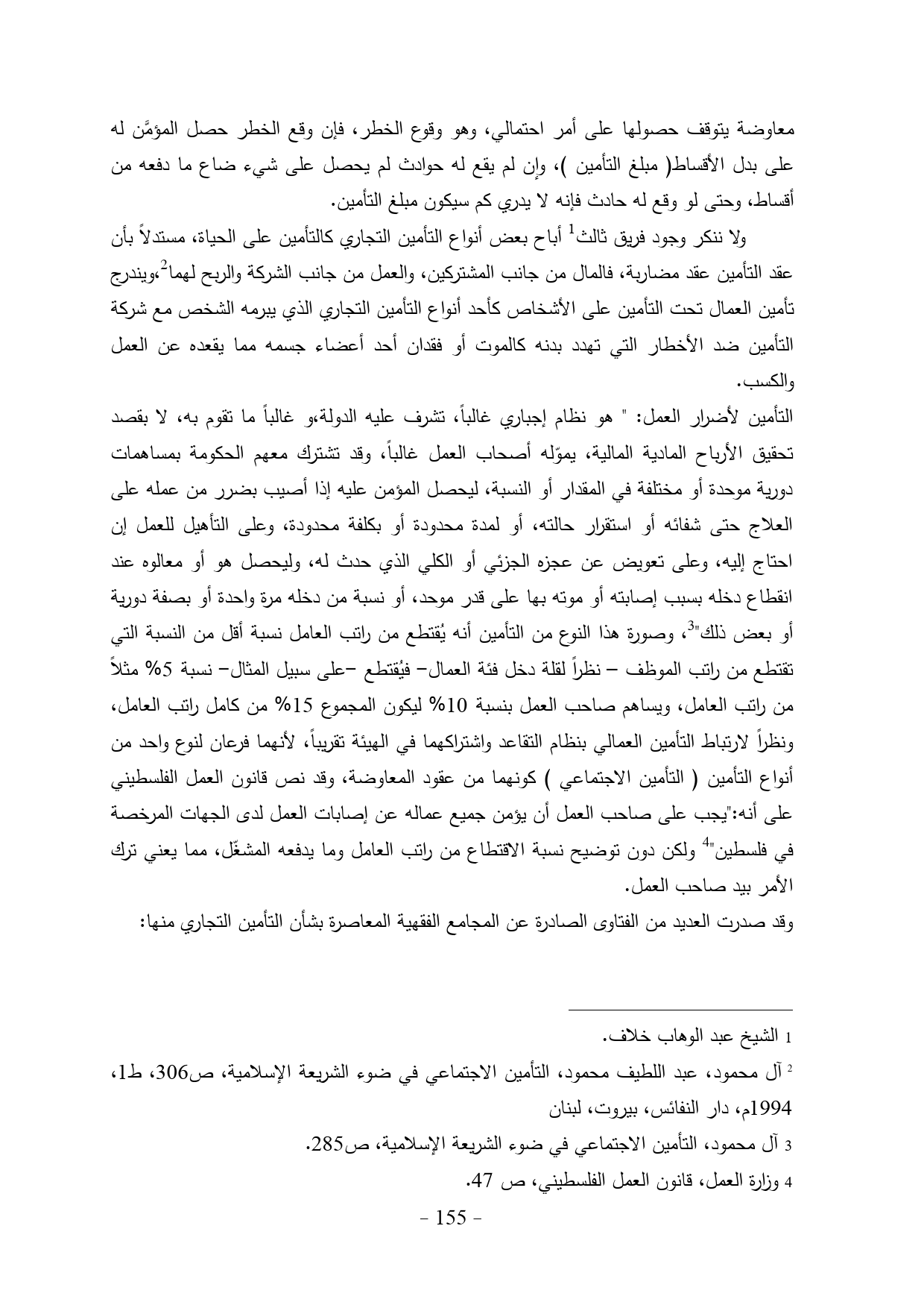 (¬2) آل محمود، عبد اللطيف محمود، التأمين الاجتماعي في ضوء الشريعة الإسلامية، ص306، ط1، 1994م، دار النفائس، بيروت، لبنان