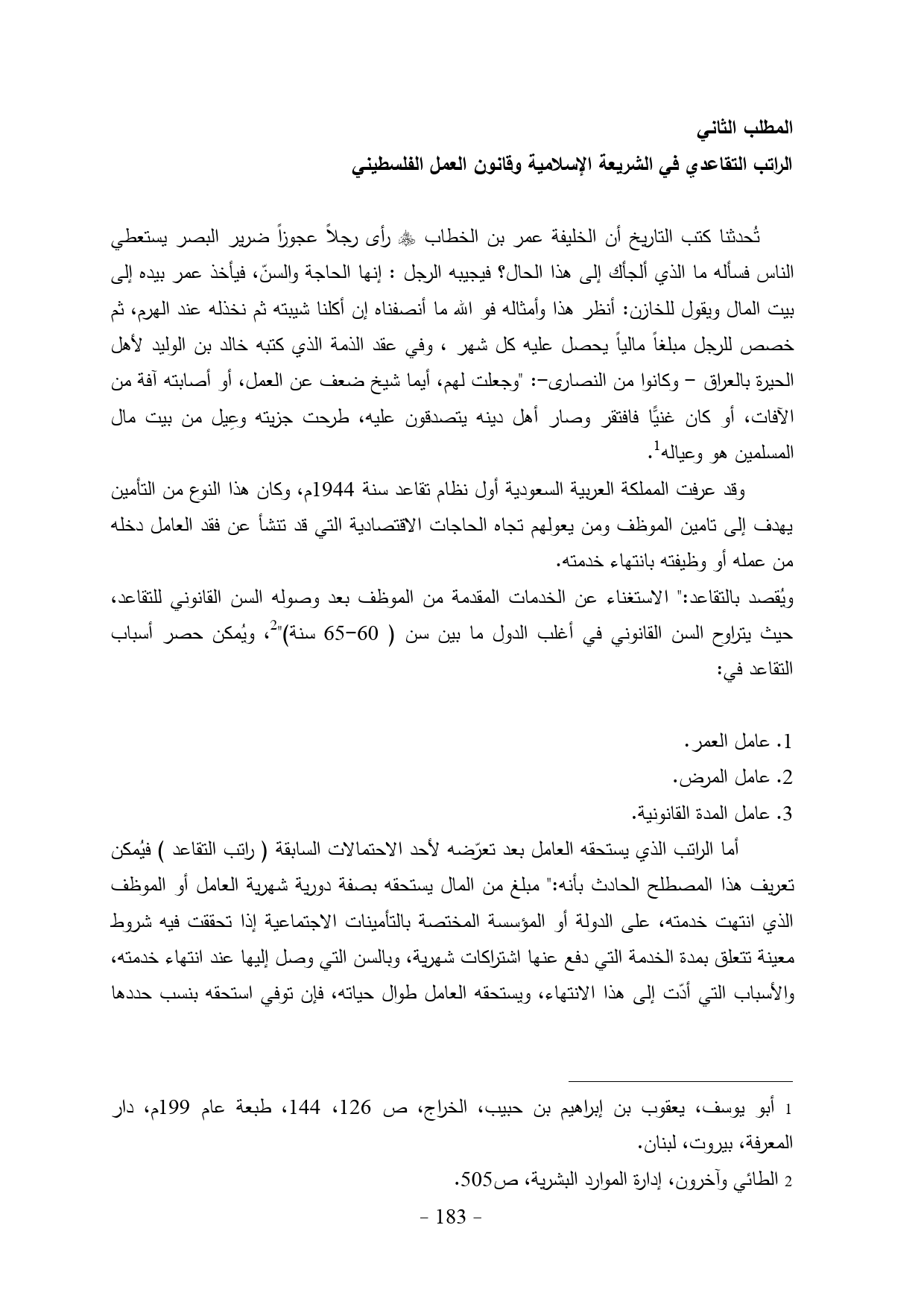 الراتب التقاعدي في الشريعة الإسلامية وقانون العمل الفلسطيني