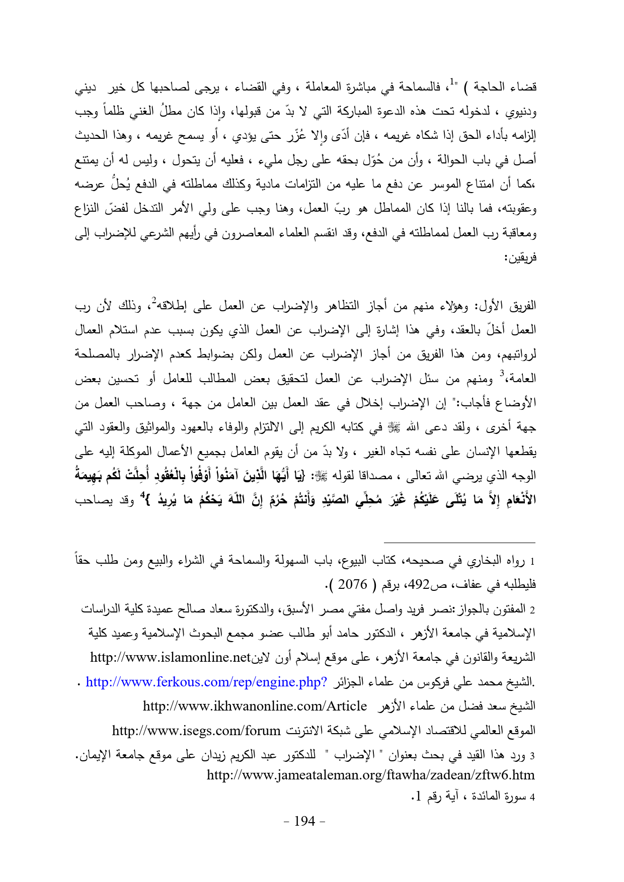 (¬3) ورد هذا القيد في بحث بعنوان " الإضراب " للدكتور عبد الكريم زيدان على موقع جامعة الإيمان. http://www.jameataleman.org/ftawha/zadean/zftw6.htm